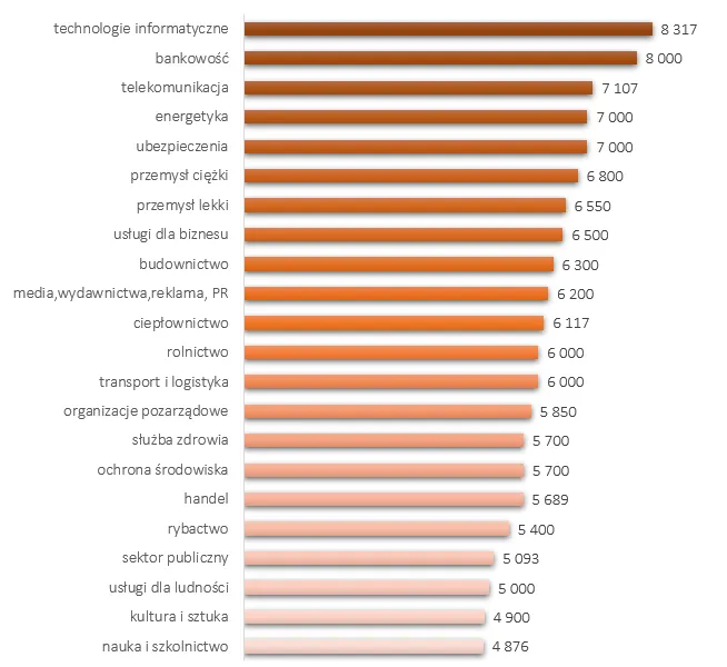 - W branży IT programiści mogą liczyć na wynagrodzenie sięgające 20 000 zł dla doświadczonych specjalistów.